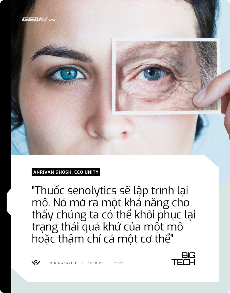 Những phân tử thuốc này hoạt động bằng cách tiêu diệt các tế bào lão hóa trong cơ thể chúng ta, kích hoạt quá trình chết tự nhiên của chúng. "Thuốc senolytics sẽ lập trình lại mô. Nó mở ra một khả năng cho thấy chúng ta có thể khôi phục lại trạng thái quá khứ của một mô hoặc thậm chí cả một cơ thể", Anrivan Ghosh, Giám đốc điều hành của Unity, cho biết. "Đây là một cách hoàn toàn mới để định nghĩa một căn bệnh là gì và sau đó nhắm mục tiêu vào nó".