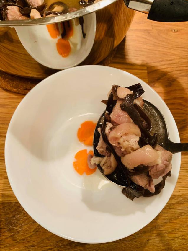 Miếng thịt đông hầm chín nhừ mềm thơm, béo ngậy được nấu cùng nấm hương, mộc nhĩ giòn giòn, thêm chút tiêu cay làm cho mùa đông miền Bắc như ấm áp hơn.