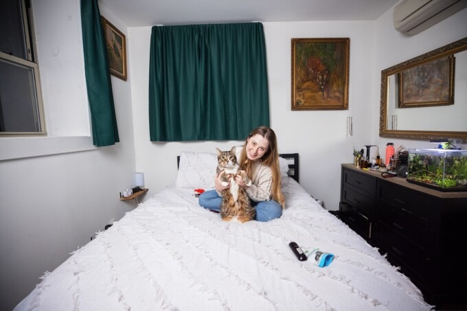 Caroline Caugliere trong căn hộ tầng hầm thuê hồi năm 2020. Ảnh: Stephen Yang/NYPost.