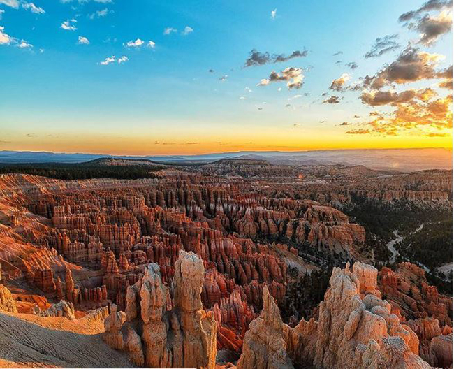 Bryce Canyon không thực sự là một hẻm núi, mà là một tập hợp các khu rừng đá tự nhiên chạy dọc theo cao nguyên Paunsaugunt. Nơi đây nổi tiếng với những khối đá đặc biệt và tuyệt đẹp như lều đá, ống khói cổ tích hoặc kim tự tháp...