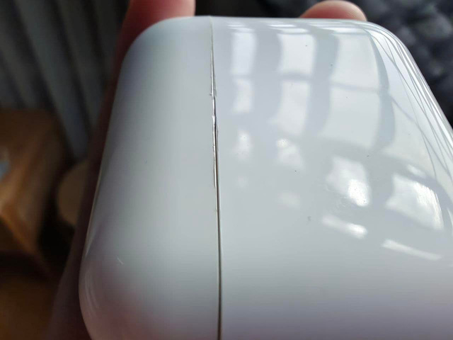 Hộp sạc AirB bị xước ngay khi vừa bóc hộp sản phẩm (Nguồn: YouTube Vật Vờ Studio)
