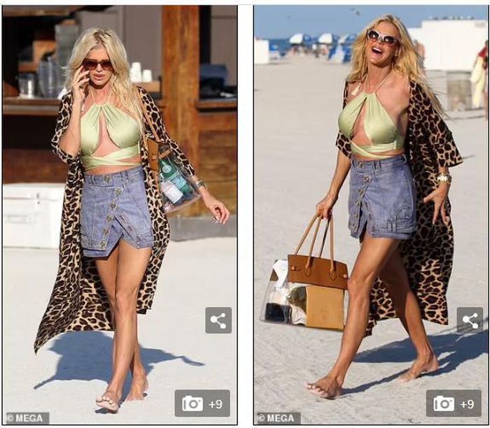 Dù vẫn giữ được nhan sắc và thân hình cân đối nhưng Victoria Silvstedt vẫn lộ dấu hiệu tuổi tác như vùng da ở cổ, chân, tay nhăn nheo rõ rệt.