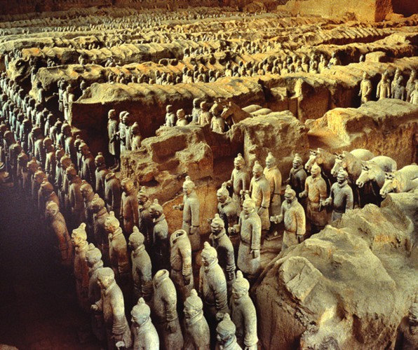 Trong những thập kỷ qua, các chuyên gia tiến hành các cuộc khai quật nhưng mới chỉ khám phá một phần lăng mộ. Hơn 8.000 tượng binh sĩ đất nung cùng nhiều cổ vật khác được tìm thấy tại lăng mộ Tần Thủy Hoàng. Tuy nhiên, đến nay, các chuyên gia vẫn chưa tìm thấy hài cốt của vua Tần. Ảnh: Sohu