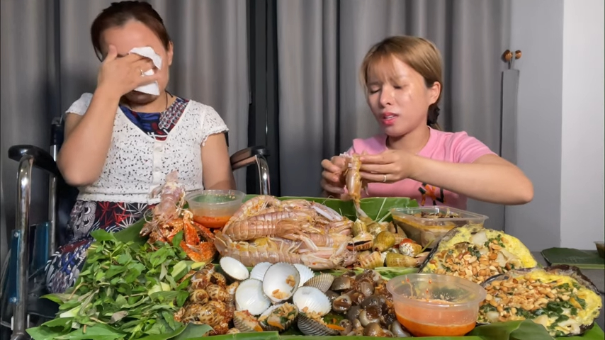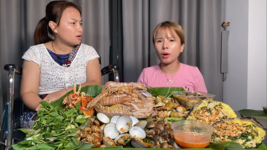 “Về Việt Nam chưa kịp ăn Tết đã bị què chân ngồi xe lăn, mâm tôm ốc các loại tại khu cách ly” là nội dung video ẩm thực mà Quỳnh Trần chia sẻ vào ngày 10/1.