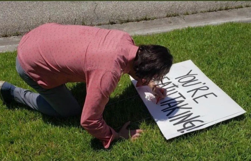 Sao phim John Wick được đánh giá là ngôi sao chiều lòng fan số một. Trong lúc ghi hình bộ phim Bill & Ted, nam diễn viên phát hiện khán giả bày tỏ sự hâm mộ thông qua tấm biển "Bạn thật ngoạn mục" trước sân nhà. Tài tử người Mỹ sau đó nhảy khỏi xe hơi, nằm xuống bãi cỏ ký tên cho fan. Ảnh: Twitter.