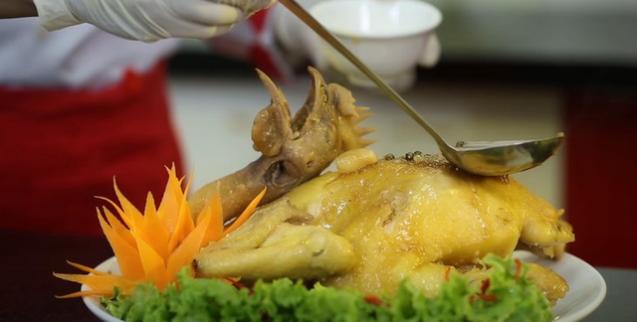 - Gà chín, để nguội, xé miếng vừa ăn. Nước sốt c̣n dư nấu cho hơi sệt lại rồi rưới lên gà đă xé.