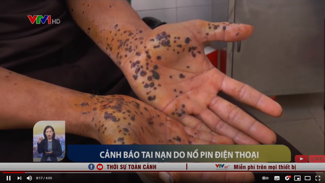 Thật khó có thể tin được nhưng chỉ trong vòng vài ngày ngắn ngủi của những ngày cuối năm 2021 và đầu năm 2022, đã xảy ra 2 vụ tai nạn thương tâm liên quan đến việc sử dụng điện thoại. Đầu tiên là bé trai ở Hà Tĩnh, vào khoảng 15h ngày 29/12, Trung tâm Y tế huyện Nghi Xuân - Hà Tĩnh đã tiếp nhận một bệnh nhân (sinh năm 2007) trong tình trạng dập nát bàn tay trái do nổ điện thoại. Các tổn thương ở bàn tay của bệnh nhân rất nặng. (Theo VOV).