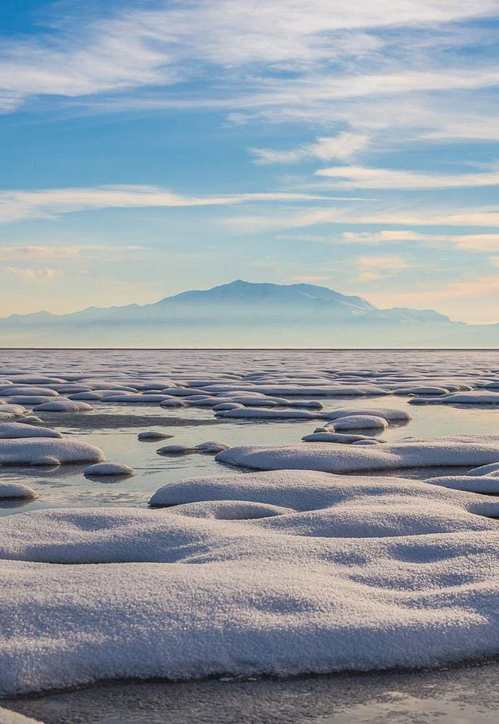 Là hồ nước mặn lớn thứ 6, hồ Great Salt ở phía bắc Utah, Mỹ, có khung cảnh biến đổi theo mực nước.