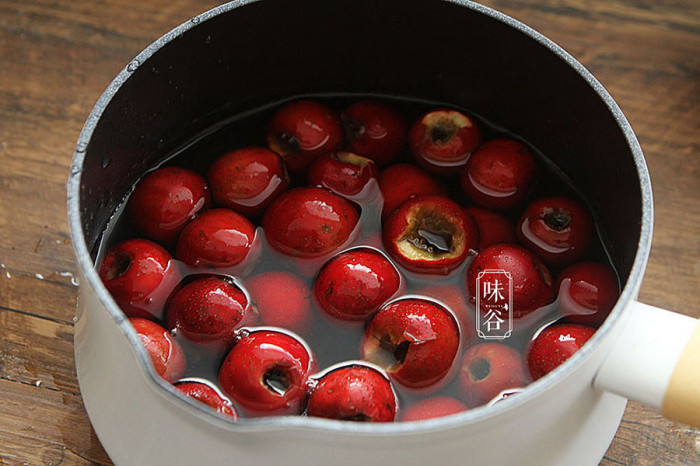 Sau khi sôi, thêm đường phèn tùy theo sở thích, điều chỉnh lửa nhỏ, đun liu riu trong 20 phút (không khuấy thường xuyên, không dùng lực quá mạnh để tránh làm hỏng hình dạng của quả táo gai)