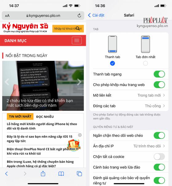 Bắt đầu từ phiên bản iOS 15, Apple đã đưa ra quyết định gây tranh cãi khi đưa thanh địa chỉ trên Safari xuống dưới cuối màn hình. Nếu không thích thay đổi này, bạn có thể vào Settings (cài đặt) - Safari - Tab - Single Tab (tab đơn nhất).