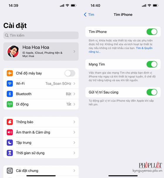 Bật tính năng Find My trên iPhone. Ảnh: MINH HOÀNG