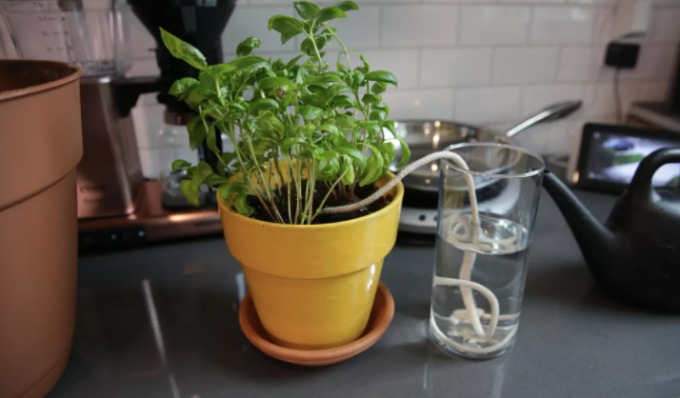 Để làm điều này bạn cần một cái xô hoặc nồi, chậu và sợi dây. Có thể là dây phơi quần áo bằng vải bông vì thấm nước rất tốt. Cắt một đoạn dây bông dài để xuống đáy hộp chứa nước. Đổ đầy nước, đảm bảo sợi dây chạm vào đáy thùng chứa.