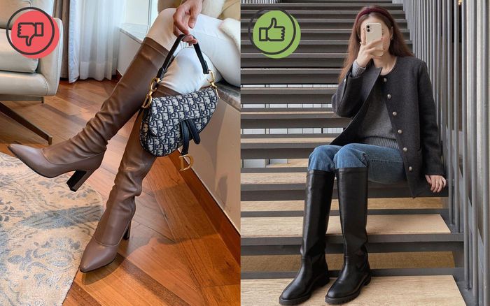 Boots rất phổ biến vào mùa đông và xuân, kiểu giày này giúp tổng thể trang phục trở nên sang xịn mịn, long lanh đúng chuẩn không khí Tết. Mẫu giày kinh điển này có rất nhiều biến tấu, nhưng không phải kiểu nào cũng đáng sắm cho tủ đồ, boots bó chân cũng nằm trong số đó. Phiên bản này thường được làm từ chất liệu da mềm, ôm gọn bắp chân và hơi nhăn một chút. Chưa nói đến khoản xỏ ra xỏ vào cực kỳ bất tiện, boots bó chân trông không được hiện đại cho lắm, thậm chí còn khiến outfit của bạn trông lỗi thời hơn. Kiểu boots chuẩn mốt bây giờ sẽ có phom dáng hơi rộng một chút, diện lên thoải mái, trẻ trung và đáng để bạn sắm về diện Tết.