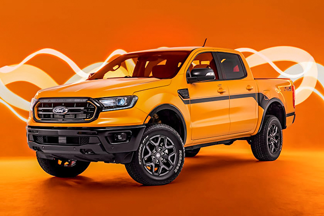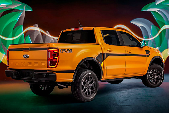 Mẫu xe năm ngoái được hoàn thiện với tông màu cam nổi bật đi kèm các tấm đề can đen, bánh xe 18 inch màu đen mờ độc đáo và nội thất phong cách cũng theo hai tông màu chủ đạo cam và đen. Gói trang trí sáng tạo này là một sự trở lại của chiếc Ranger những năm 90 mà Ford đã cung cấp kèm với gói retro.