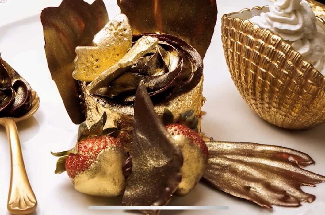 Golden Phoenix bao gồm một chiếc bánh chocolate được gói trong miếng vàng 23 kara dát mỏng. Ngay cả những vật trang trí xung quanh chiếc bánh cũng được phủ một lớp bụi vàng.
