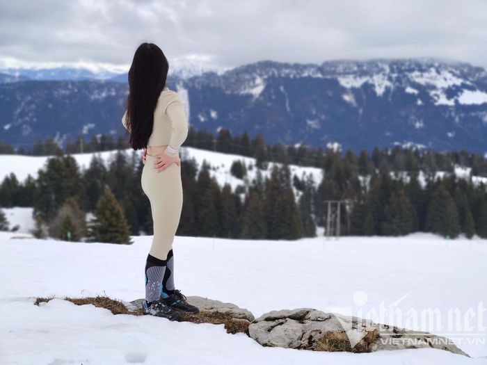 Chưa từng được thấy tuyết ngoài đời thực nên sau khi biết thông tin núi Semnoz (Annecy) có tuyết rơi, Lăng quyết định lên đường luôn. “Mình muốn trải nghiệm cảm giác trekking trên núi tuyết sẽ khác gì khi trekking ở núi Bà Đen hay Fansipan”, Lăng chia sẻ.