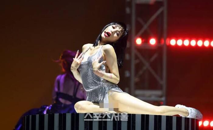 Thế nhưng sân khấu lần này của HyunA khiến nhiều người "sốc nặng" với màn vén váy khoe nội y. Không biết đây là động tác trong vũ đạo hay do một phút quá cao hứng, thế nhưng nhiều người nhận định hành động của HyunA khá phản cảm.