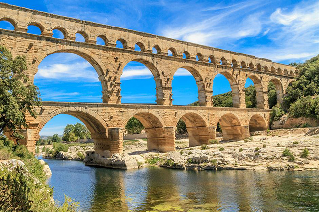 Pont du Gard, Pháp: Cây cầu dẫn nước Pont du Gard gần 2.000 năm tuổi là bằng chứng đáng kinh ngạc về sự khéo léo của kỹ thuật La Mã. Được xây dựng để cung cấp nước cho thành phố Nîmes gần đó, đây là cây cầu cao nhất và là một trong những cây cầu La Mã được bảo tồn tốt nhất vẫn còn tồn tại.