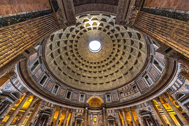 Mặc dù tòa nhà đã được hoàn thành vào năm 125 sau Công nguyên, nhưng ngôi đền La Mã này vẫn là một trong những công trình được bảo tồn tốt nhất với bên trong là mái vòm bê tông không cốt thép lớn nhất trên thế giới.