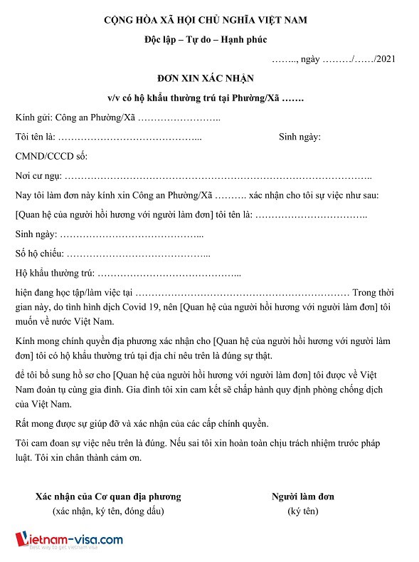 Thế rồi trong đơn bảo lãnh đã xác định quan hệ nhân thân rồi, vẫn chưa đủ, lại phải làm một giấy riêng xác nhận thân nhân nữa. Xong rồi thì là vác tất cả mớ giấy đấy, cộng với bản sao hộ khẩu (mặc dù hộ khẩu đã bỏ từ 01.7/2021) + căn cước, lại lếch thếch lên Ban chỉ đạo Quốc gia phòng chống dịch COVID để được xét duyệt một lần nữa.
