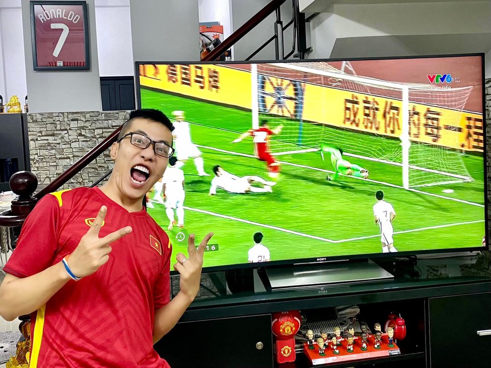 Ngô Kiến Huy đăng ảnh chụp cùng khoảnh khắc đội tuyển Việt Nam ghi bàn và dành tặng các chiến binh áo đỏ trái tim. MC Thành Trung dí dỏm nói: "Thế là cả nước sắp được lì xì".