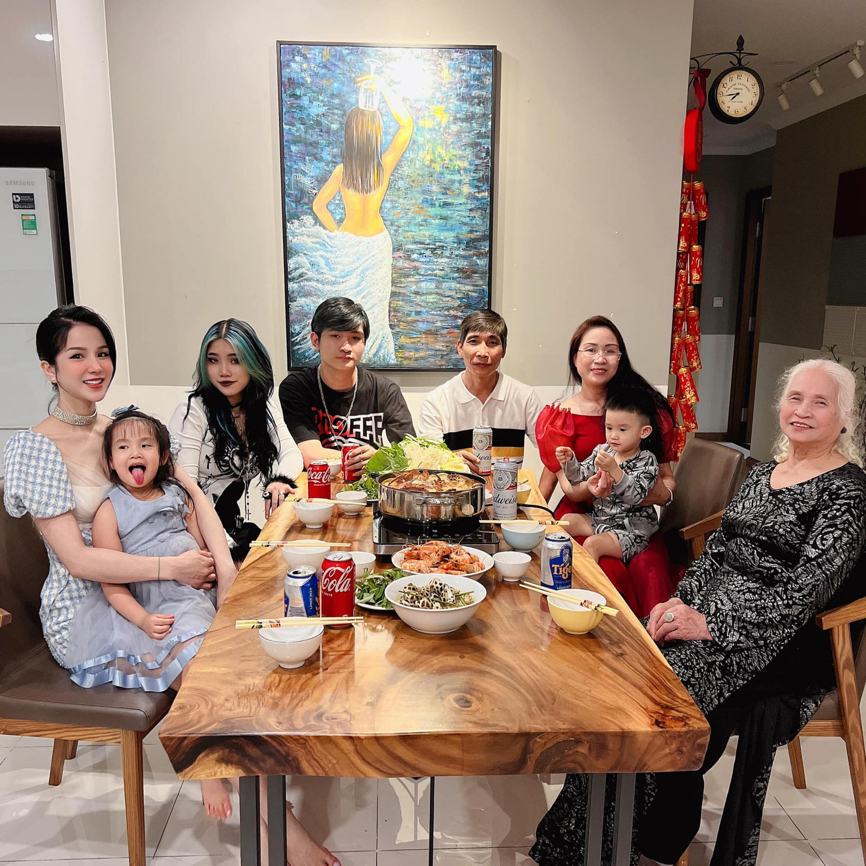 Diệp Lâm Anh còn tự tay nấu bữa ăn sum vầy với gia đình nhỏ