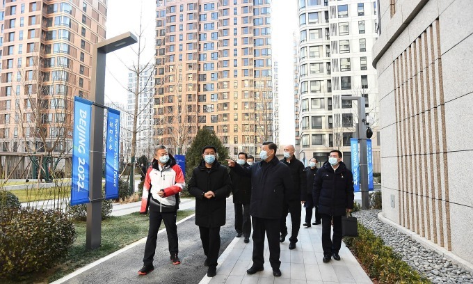 Chủ tịch Trung Quốc Tập Cận Bình thị sát làng vận động viên Olympic Bắc Kinh đầu năm nay. Ảnh: Xinhua.