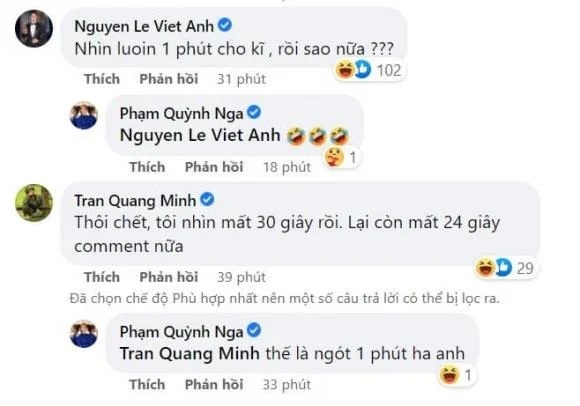 Đặc biệt "tình tin đồn" Việt Anh cũng gây chú ý khi không bỏ qua loạt hình khoe sắc này và để lại lời bình luận: "Nhìn luôn một phút cho kĩ, rồi sao nữa?".