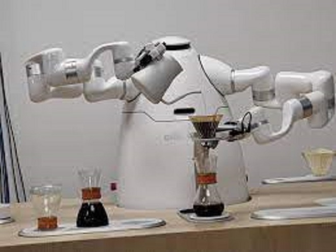 Robot phục vụ cà phê tại Trung tâm thể thao Ngũ Tùng (Bắc Kinh). Ảnh nguồn: Yangcheng Evening News.