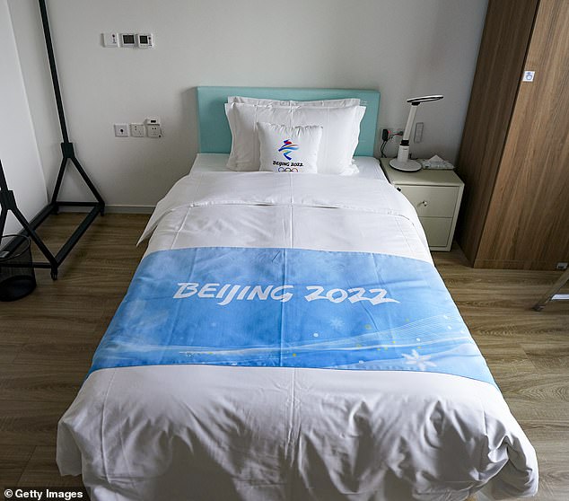 Giường công nghệ cao có trang bị nệm mút hoạt tính có thể theo dõi nhịp tim và nhịp thở tại Làng thế vận hội Bắc Kinh. Ảnh nguồn: Daily Mail.