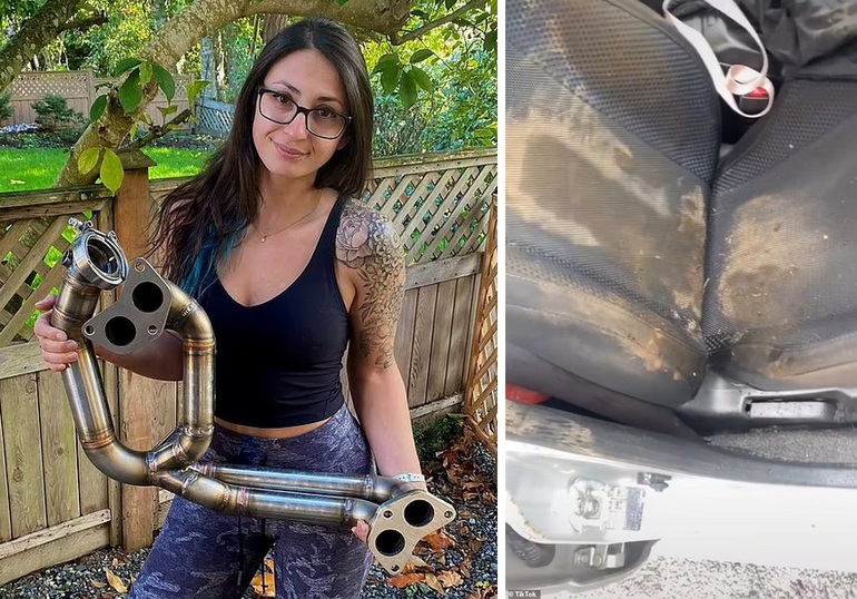 Một cô gái người Canada đã rất sốc khi phát hiện ra "bí mật" ẩn giấu bên trong cốp xe của mình từ một vết bẩn trên ghế.
