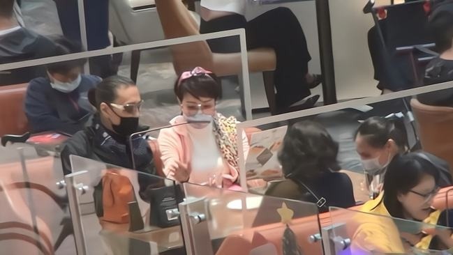 Khi chồng chưa tới, bà Địch Ba Lạp ngồi cạnh ông Tạ Hiền để chọn đồ ăn cho ông và trò chuyện. Đi cùng họ còn có hai người phụ nữ.