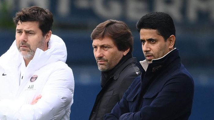 Bộ ba Pochettino, Leonardo và Khelaifi chịu trách nhiệm cho thất bại của PSG mùa này. Ảnh: Reuters.