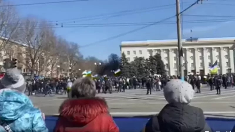 Hàng trăm người dân Ukraine biểu tình ở Kherson phản đối Nga ngày 13 tháng 3