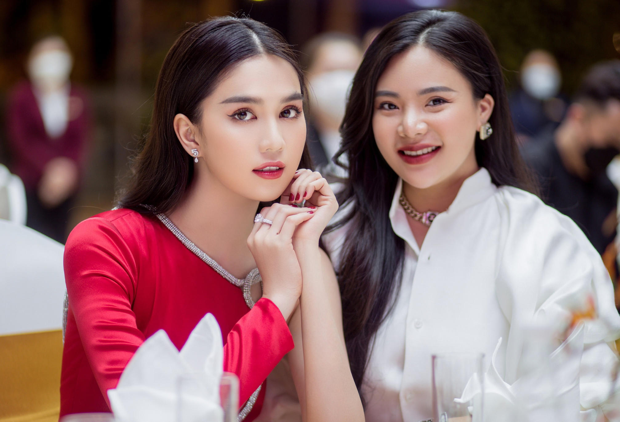 Người đẹp phối nhẫn kim cương, phụ kiện bông tai hài hòa với trang phục. Ngọc Trinh hào hứng làm giám khảo cuộc thi nhan sắc dành cho các nhân viên trong công ty, hôm 17/4.