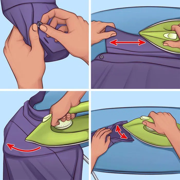 3. Nếu là váy có cúc, hãy cẩn thận không để bàn là chạm váo cúc. Nhiều phụ liệu trên váy có thể bị hỏng khi tiếp xúc với nhiệt độ cao.