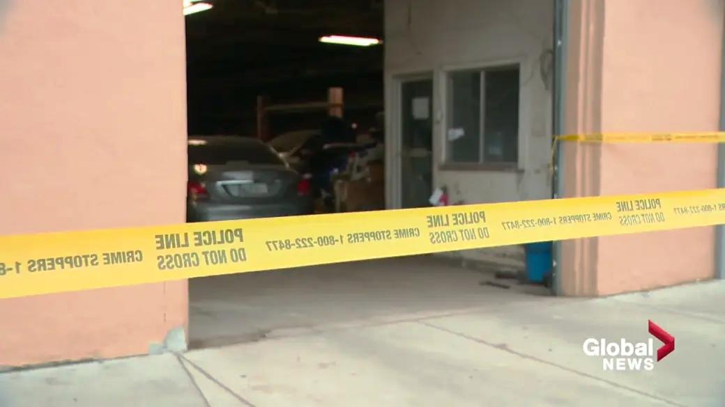 Lối vào tiệm làn dàn đồng xe Albert's Autobody. (Global News)