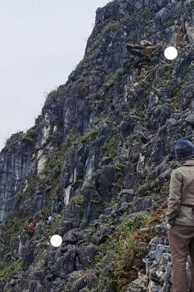 Vị trí du khách ngã xuống từ vách núi và điểm rơi cuối cùng. Ảnh: NVCC