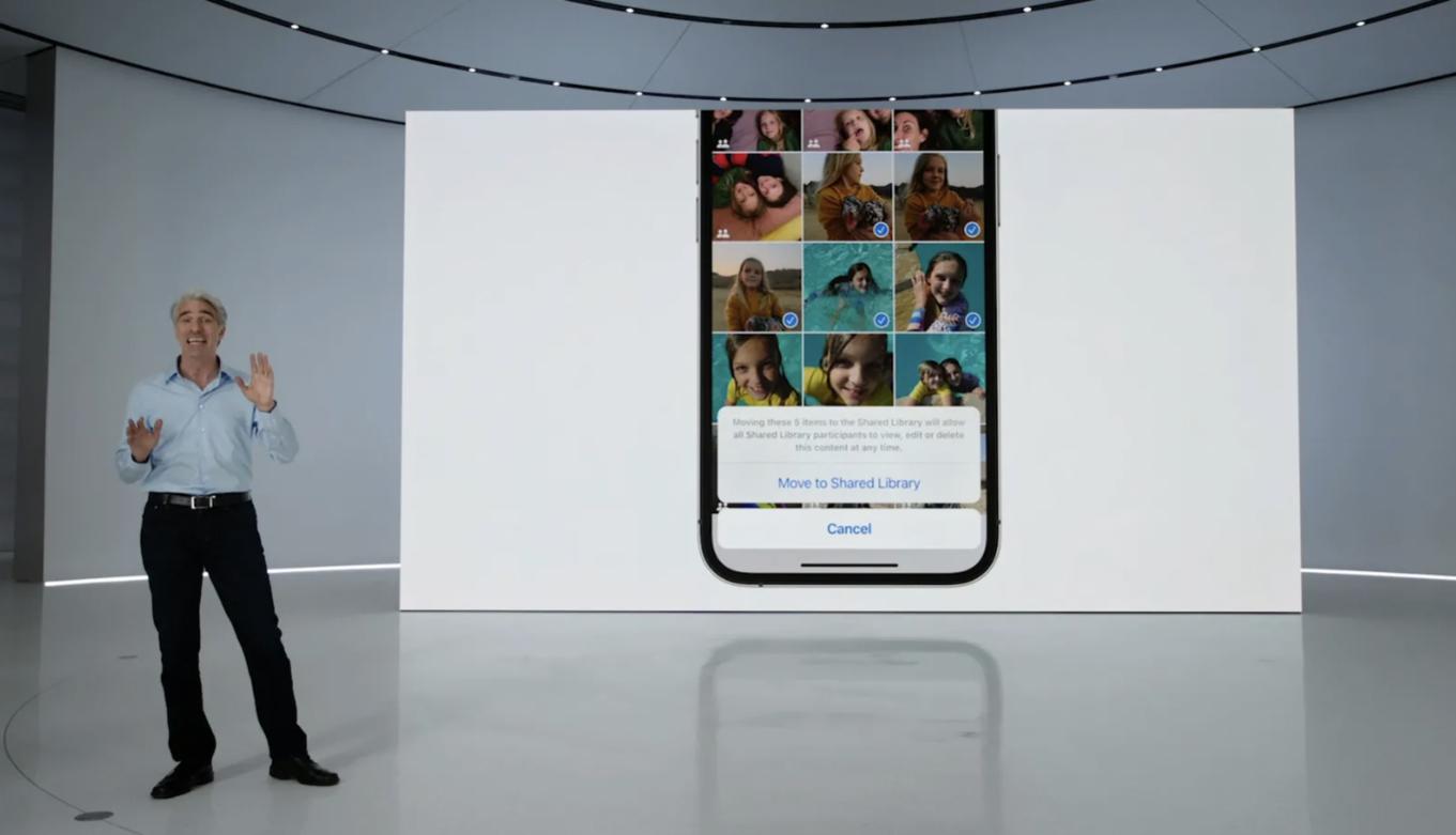 Apple cũng bổ sung thư viện ảnh iCloud được chia sẻ nhằm giúp việc chia sẻ một số ảnh nhất định trên các tài khoản gia đình và bạn bè trở nên dễ dàng hơn. Ảnh bao gồm đề xuất chia sẻ, chỉnh sửa ảnh và từ khóa sẽ được đồng bộ hóa cho tất cả người dùng.