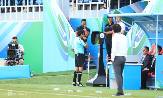 Trọng tài Perera trực tiếp xem lại tình huống...
