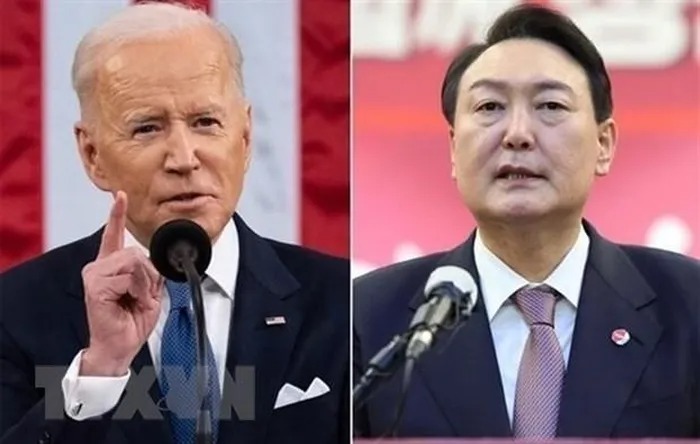 Tổng thống Mỹ Joe Biden (trái) và Tổng thống Hàn Quốc Yoon Suk-yeol (phải). (Ảnh: EPA/TTXVN)
