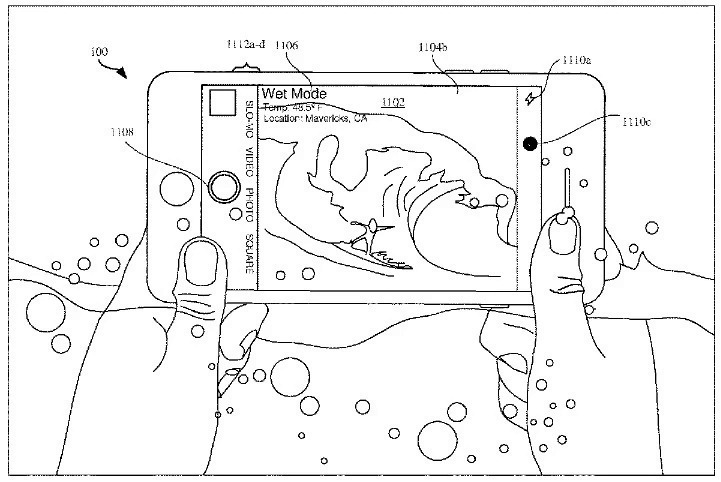 Apple vừa được Văn phòng Sáng chế và Nhãn hiệu Mỹ (USPTO) cấp bằng sáng chế có tên "Tính năng thích nghi của thiết bị điện tử khi tiếp xúc với hơi ẩm". Theo mô tả, người dùng thiết bị di động có thể dễ dàng dùng ngón tay thao tác trên màn hình cảm ứng ngay cả khi màn hình hoặc ngón tay bị ướt, kể cả trời mưa nhẹ hoặc đang được sử dụng dưới nước.