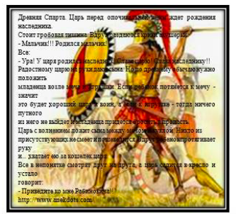 Vị vua lo lắng đặt đứa bé giữa thanh gươm và con búp bê. Mọi người có mặt không dám cười nói, cử động. Thình lình đứa bé với tay nắm lấy hầu bao của nhà vua, còn nhà vua ngồi phịch xuống ghế và mệt mỏi nói: