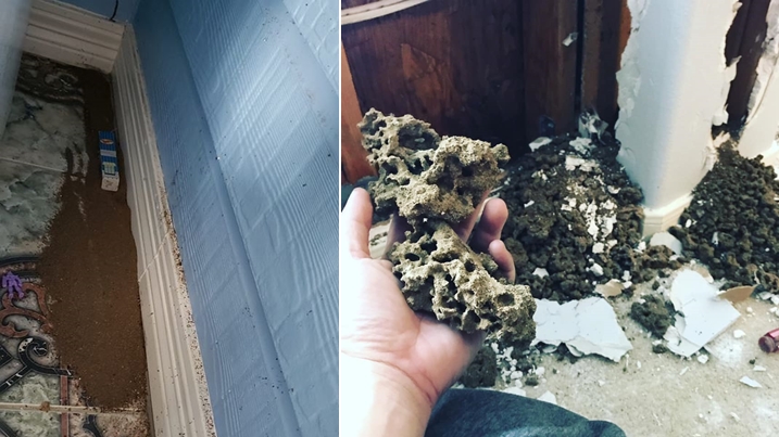 Bạn ChrisTin Jon Phucken Nguyen đánh liều đập vách và phát hiện ra tổ kiến khổng lồ.