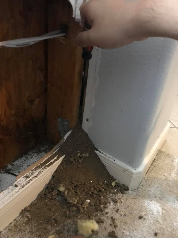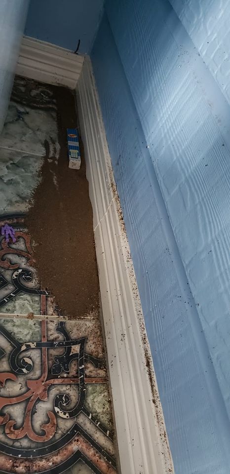 Bị 1 lần tởm rồi đó là vách tường trong phòng khách. Ngay cái cửa đi ra sau nhà. Nguyên cái bức tường đằng sau nhà bị hết. Phòng khách, phòng ngủ, phòng ăn. Tháo cái ổ điện ra xem bên trong có vết tích cát của ổ kiến không. Nếu có thì phải diệt tận gốc nếu không nó sẽ bốc mùi''.