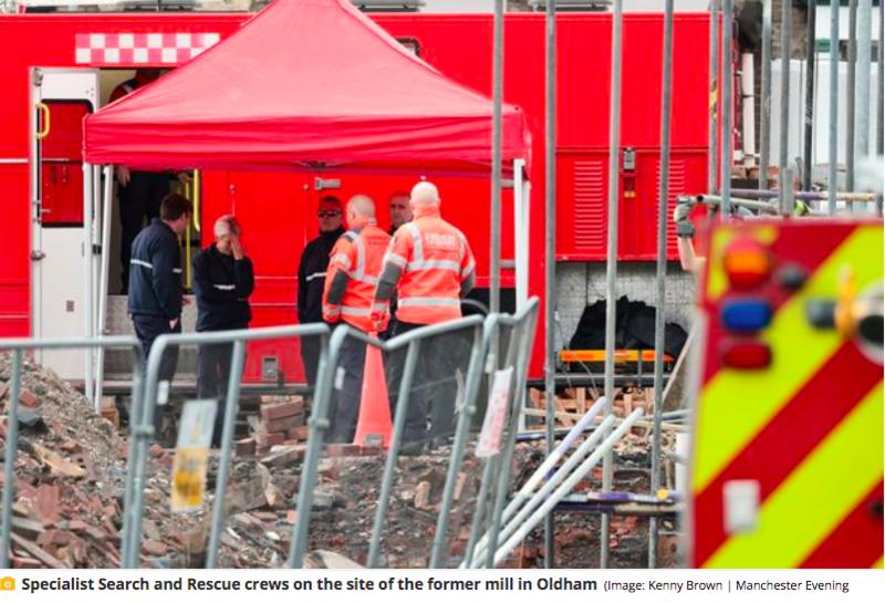 Đội tìm kiếm cứu nạn tại hiện trường vụ cháy ở Oldham