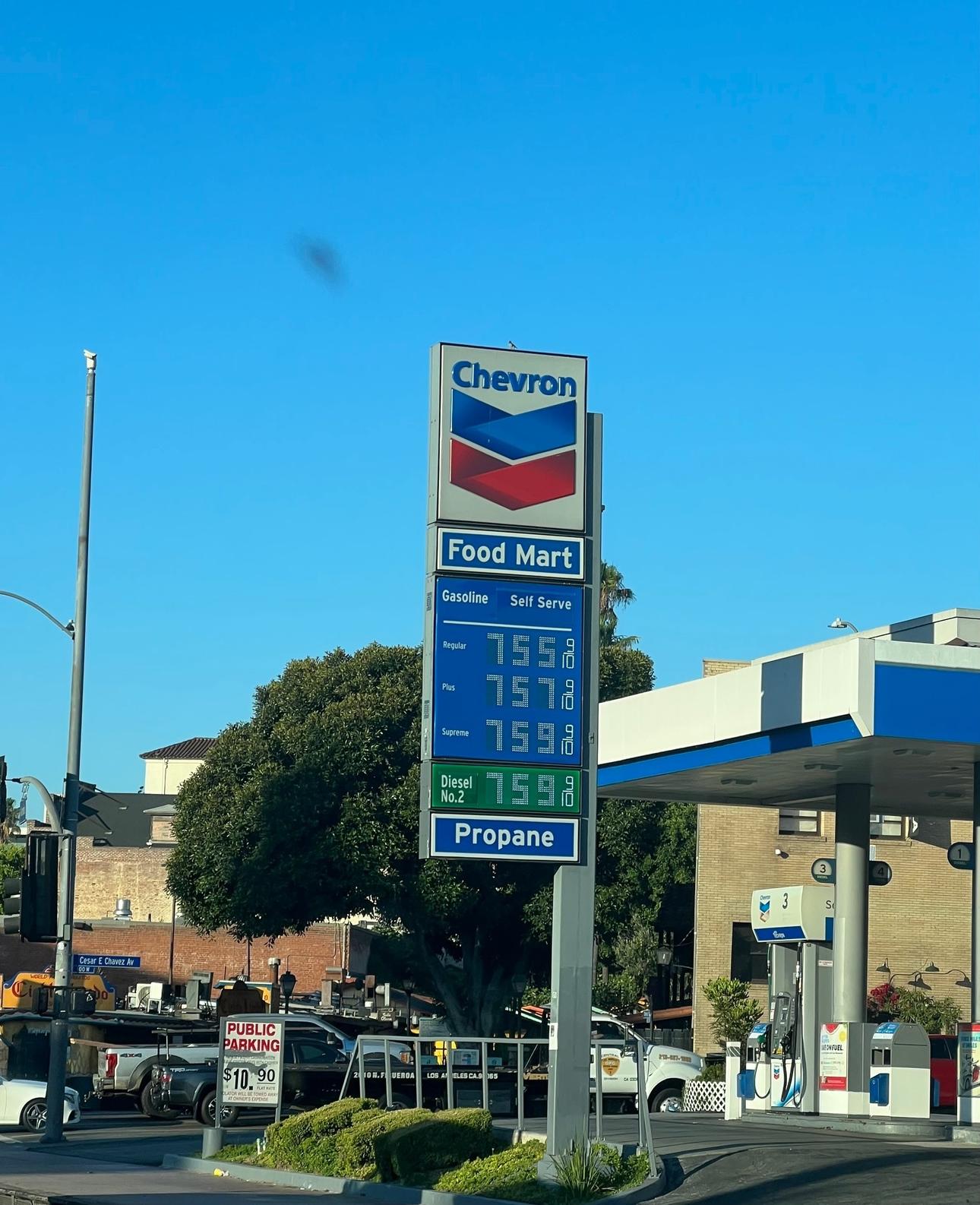 Gần 2 tuần trước, một cây xăng ở Los Angeles có giá 7,56 USD/gallon