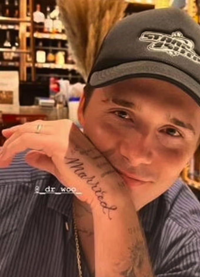 Ngày 18/8, Brooklyn khoe hình xăm mới "married" (đã kết hôn) ở tay trái trên trang cá nhân. Trả lời USA Today, anh cho biết thường xăm để tôn vinh vợ. "Cô ấy thường khóc vì xúc động khi tôi khoe hình. Tôi thích gây bất ngờ cho Nicola Peltz bằng những vết mực mới", Brooklyn nói.