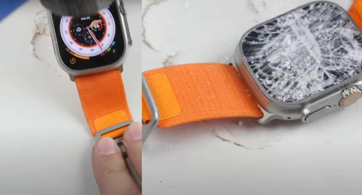 Màn hình của Apple Watch Ultra khá bền sau các bài kiểm tra thả rơi, cọ xát với các thiết bị kim loại… Tuy nhiên, sau bài kiểm tra bằng búa, thiết bị đã bật không lên, nhiều khả năng cho thấy phần cứng bên trong có thể đã bị hỏng.