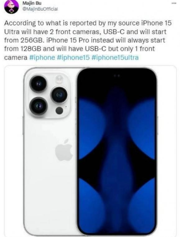 Mới đây, chuyên gia mách nước Majin Bu, người được biết đến thông qua việc làm rò rỉ thông tin về các phụ kiện của Apple, đã đăng trên Twitter rằng nguồn tin của họ đã nói rằng iPhone 15 Ultra sẽ có hai camera trước.
